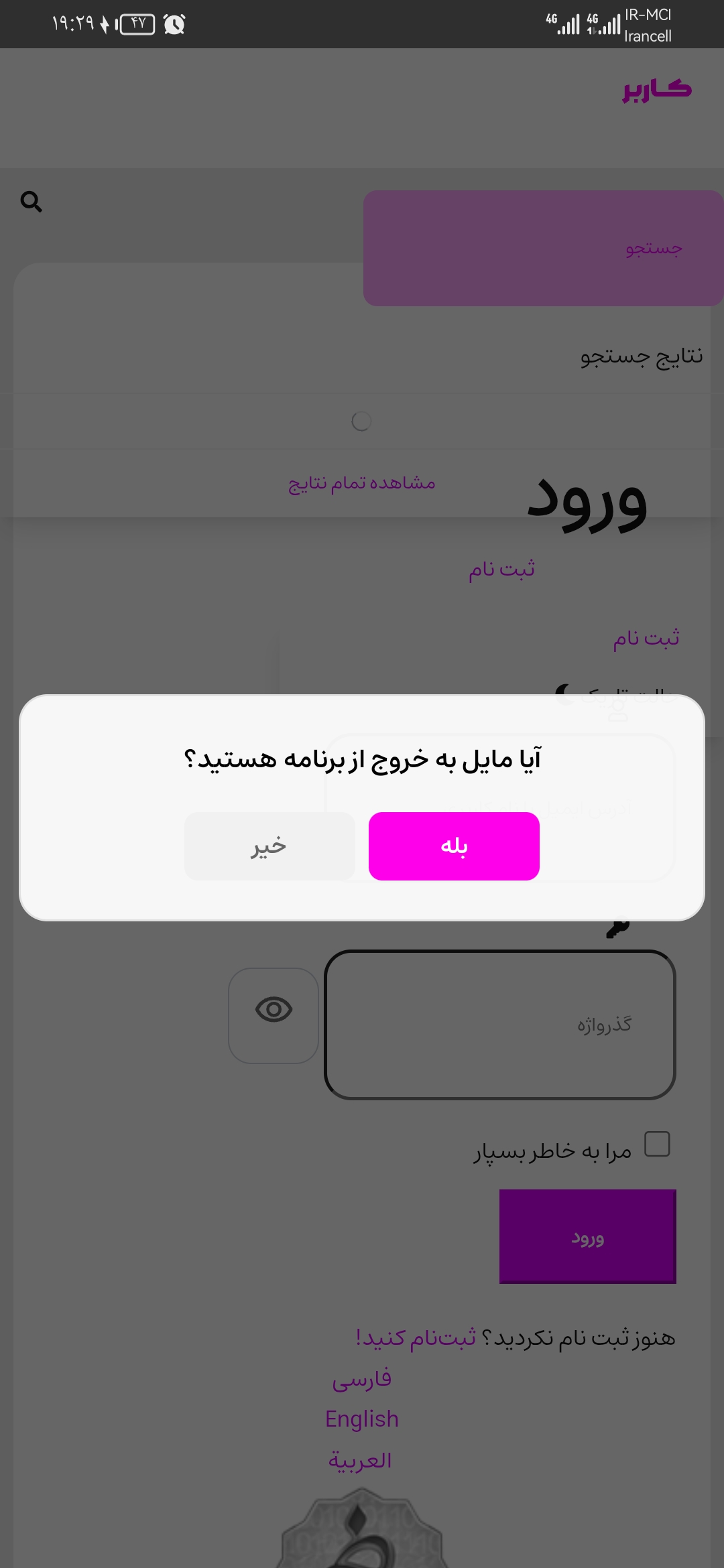 اپلیکیشن کاربر با پکیج نیم ir.karbarapp.android.apk که توسط سرویس اپلیکیشن وب ویو اپ پاش ( اندروید ) ساخته شده است، برای یک وبسایت چت و گفتگو شبکه اجتماعی است.